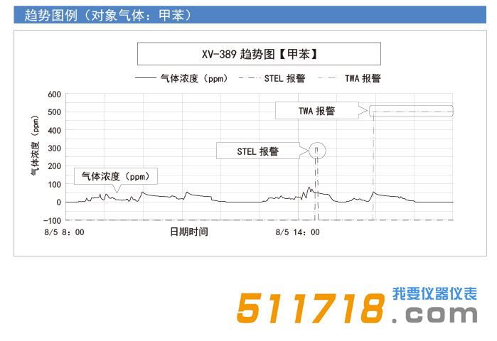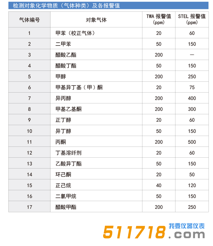 報警設(shè)定值:TWA報警:8小時暴露界限值;STEL報警:短時間(15分鐘)暴露界限值