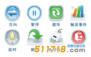 · 提供8種邏輯控制模塊:方向、延時、事件觸發(fā)、狀態(tài)輸出、暫停、跳轉(zhuǎn)、循環(huán)、停止