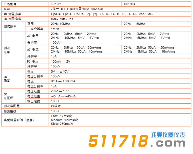 TH2839阻抗分析儀性能特點(diǎn):